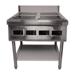 بان ماري لتسخين وحفظ الطعام، مصنوع من الفولاذ المقاوم للصدأ ويعمل بنظامي غاز وكهرباء للحفاظ على درجة حرارة الطعام بشكل متساوٍ.