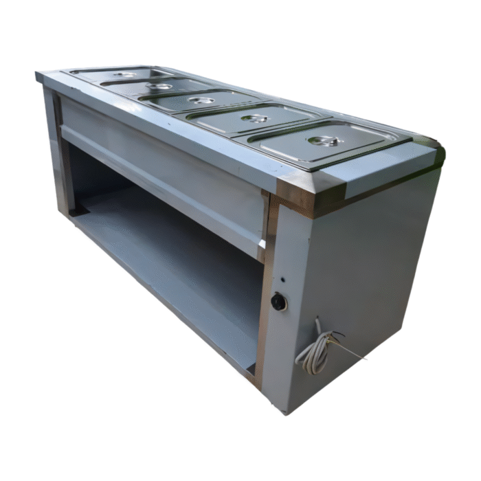 سخان تقديم الطعام 5 حوض من المعدات الأساسية في المطاعم والكافيهات، حيث يتيح تسخين الطعام أو الحفاظ على درجة حرارته بشكل متساوٍ وفعال.