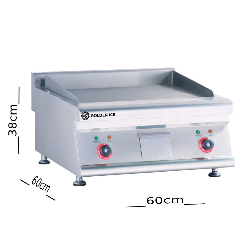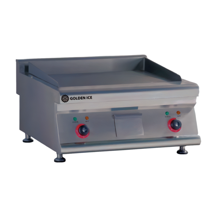 شواية جريل كهرباء HEG-606 بحجم 60 سم مصنوعة من الاستانلس ستيل الغذائي المقاوم للصدأ والفطريات، مصممة لتتحمل ضغط العمل اليومي في المطاعم والكافيهات ومشاريع الفود ترك. تعتبر الخيار المثالي لشوي البرجر، اللحوم، الدجاج، والخضروات بجودة عالية ونكهة شهية.