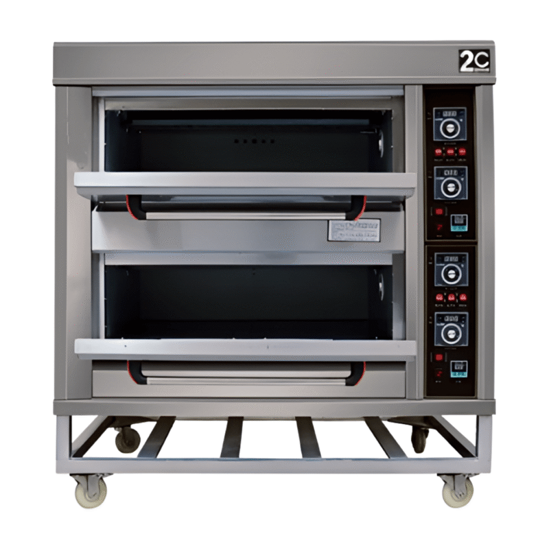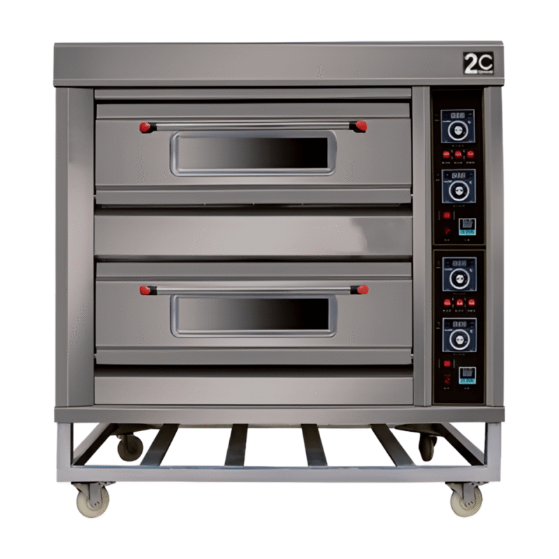 فرن حجر أسود بصينيتين 40×60 من Equiper، متين وأنيق يوزع الحرارة بالتساوي ليمنحك خبز وبيتزا مثالية بجودة احترافية.